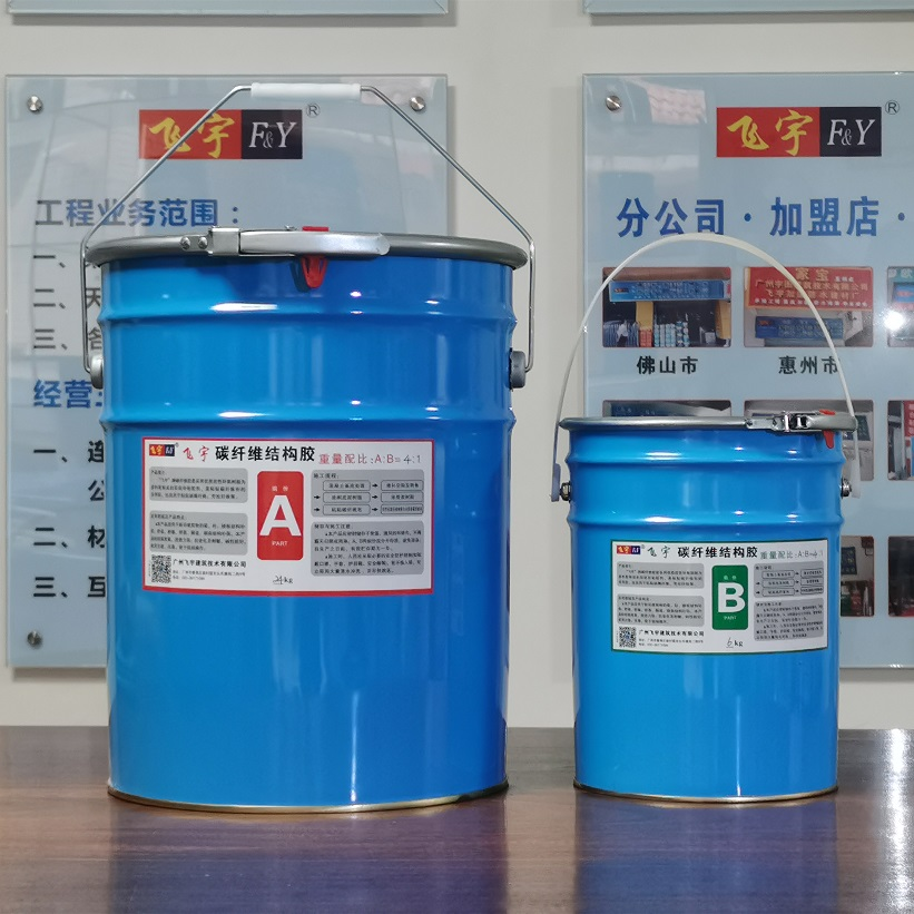 碳纖維結(jié)構(gòu)膠是以環(huán)氧樹脂為原料經(jīng)過特殊工藝改性配制成的雙組粘膠劑,對碳纖維材料有良好的浸潤性適配性。碳纖維膠浸潤到碳纖維布中形成的復(fù)合材料具有優(yōu)秀的力學(xué)性能和優(yōu)良的耐久性
